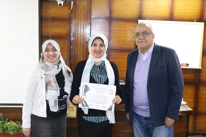 وعقب المحاضرة قام مجلس نقابة أطباء الأسنان بالإسكندرية بحضور الدكتور وليد الديب نقيب أطباء الأسنان بالإسكندرية، والدكتورة بسمة مراد الأمين العام المساعد لنقابة أطباء الأسنان بالإسكندرية، والدكتور حازم الطلخاوي عضو مجلس نقابة أطباء الأسنان بالإسكندرية، قاموا بتكريم الدكتورة ياسمين علاء، على جهودها المتميزة خلال المحاضرة.